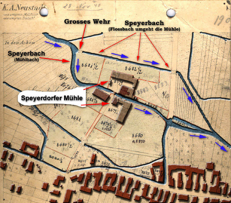 führenden Arm des Speyerbaches für die neue Ratsmühle in Speyer ab. Doch