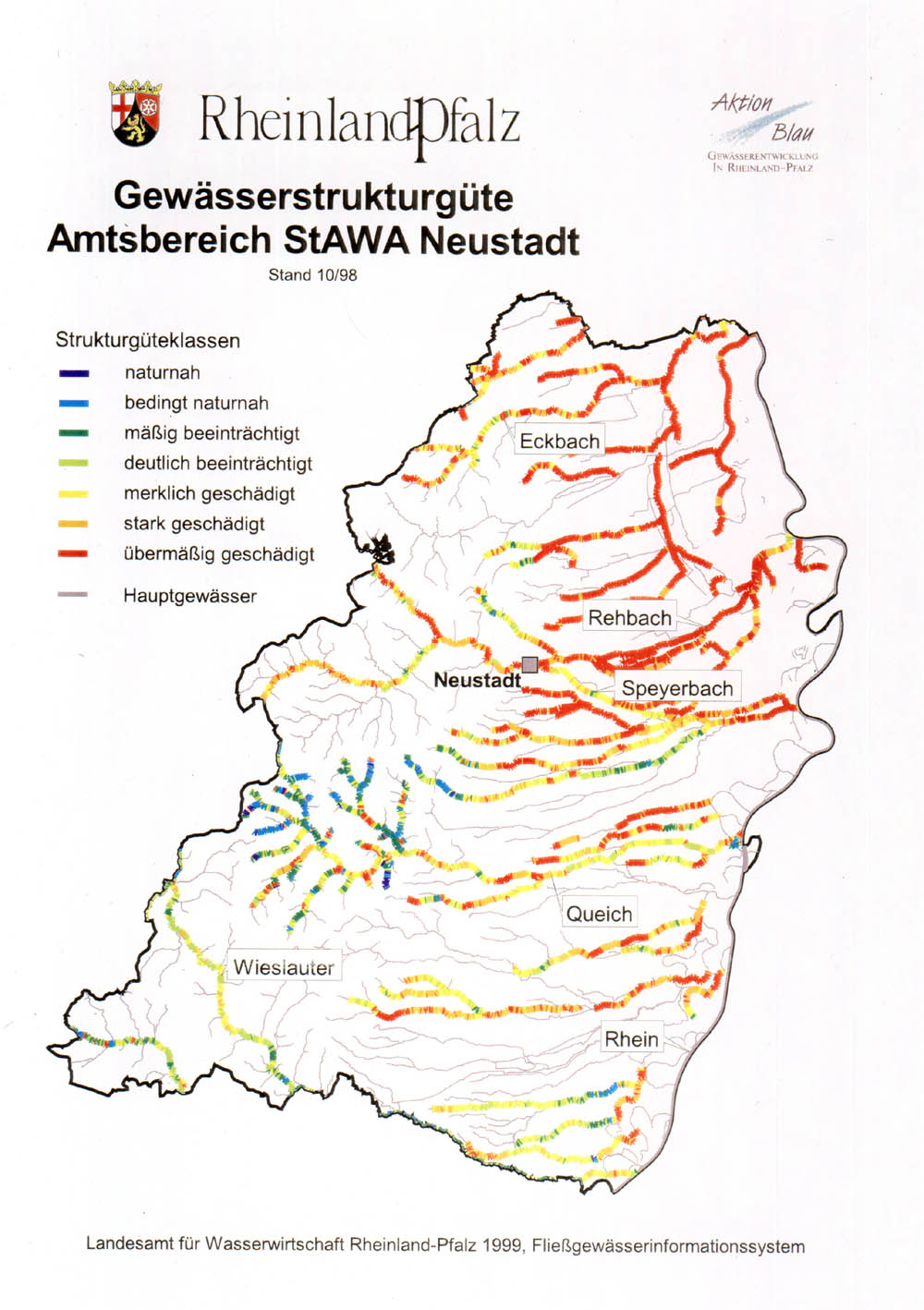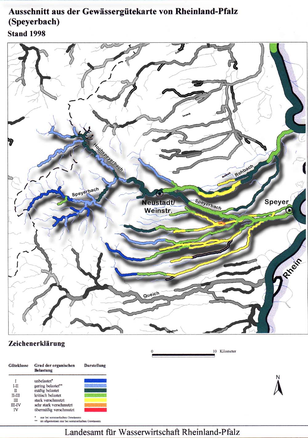der Speyerbach, in seinem Unterlauf ab Neustadt, ein totes Gewässer, eine