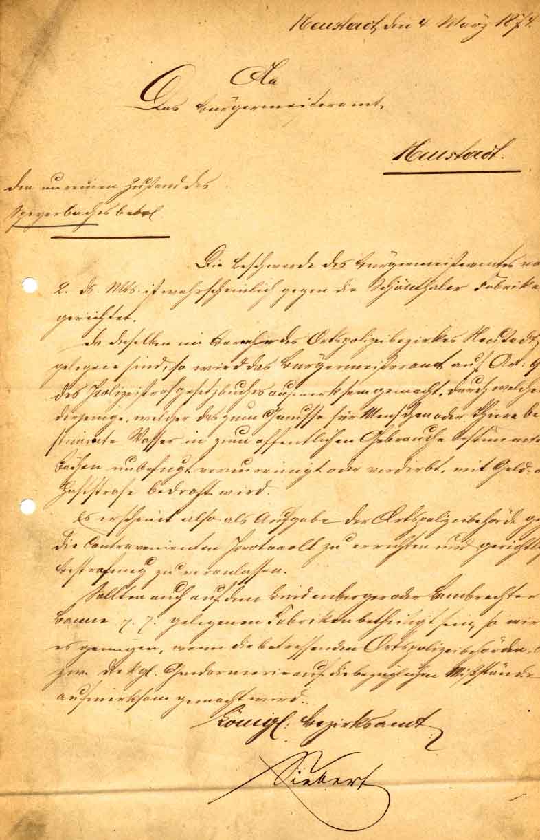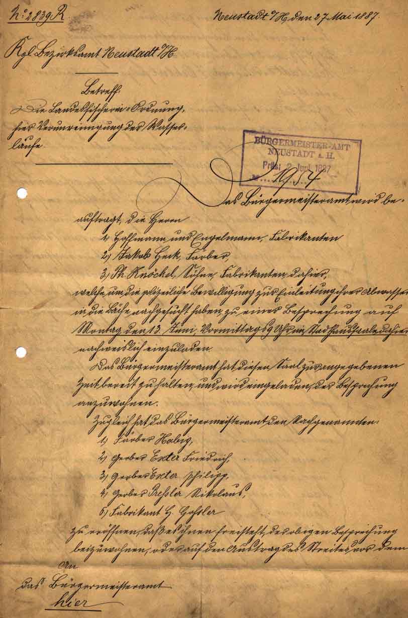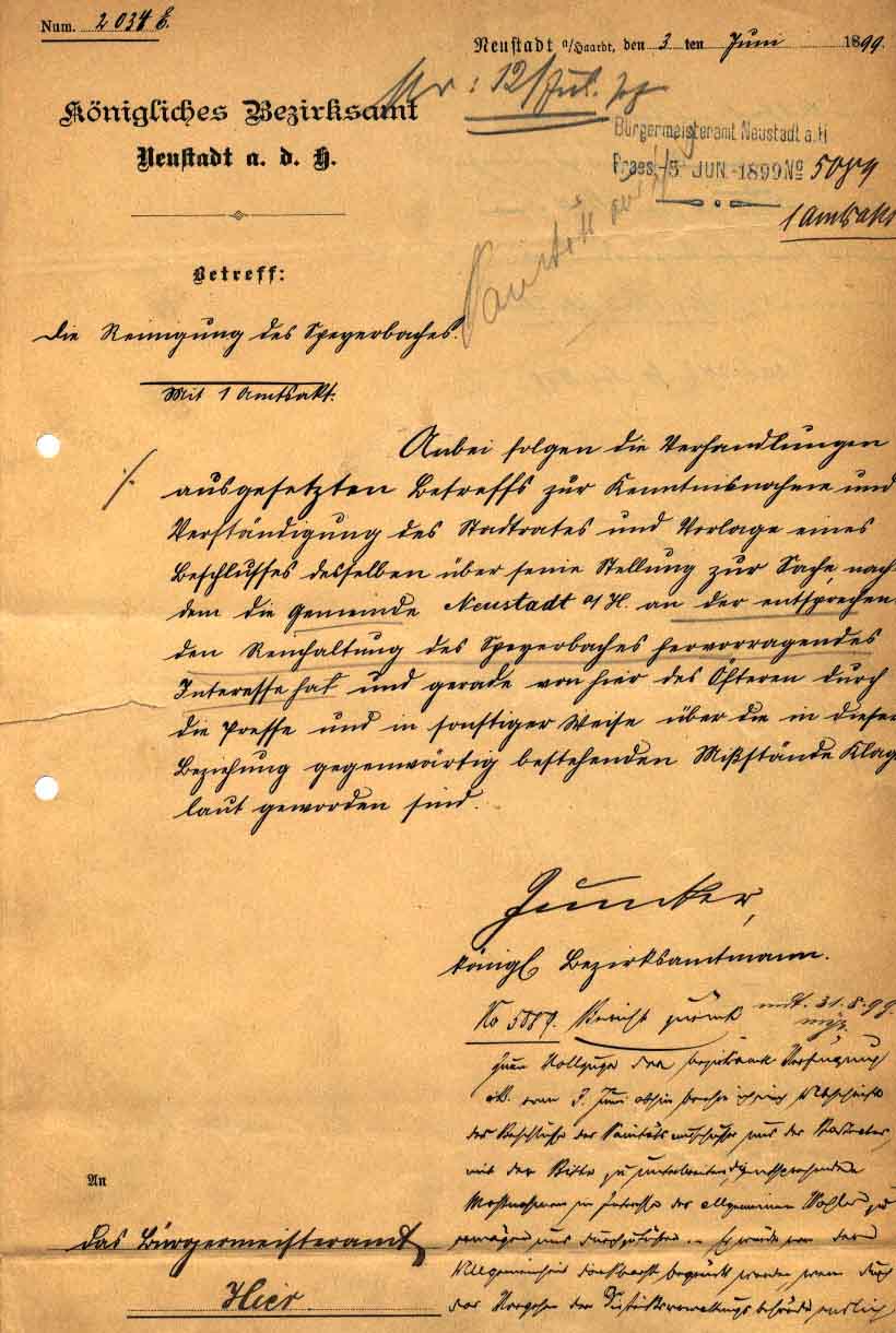 seine Stellung zur Sache, nachdem die Gemeinde Neustadt a./H. an der
