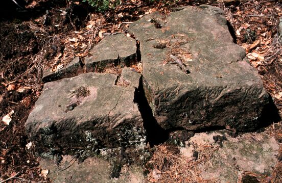 Auf eine Astgabel gelegt, wurden die Quader wie an einer