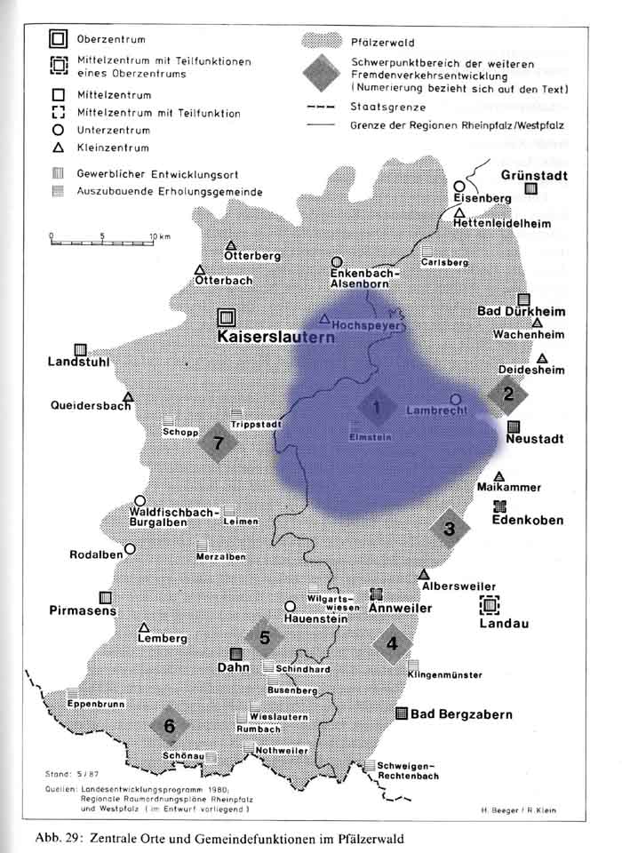 Orte und Gemeindefunktionen im Bereich des Pfälzer Waldes |