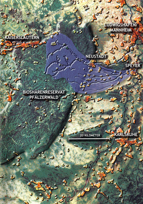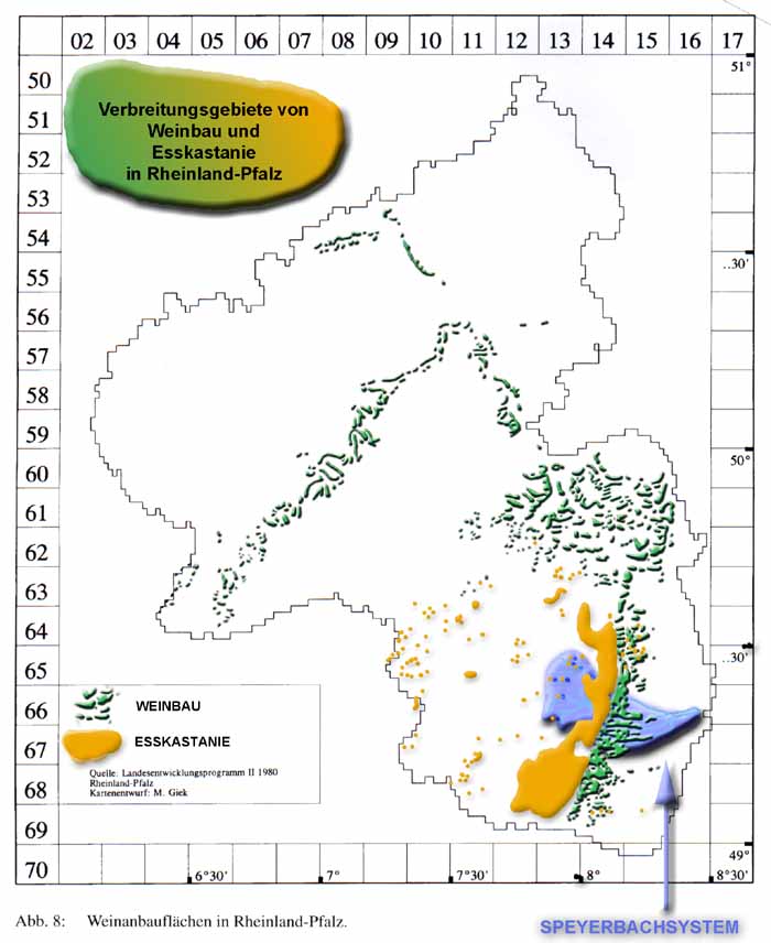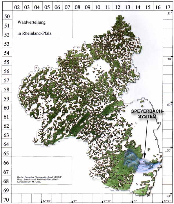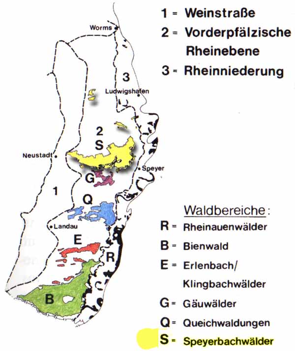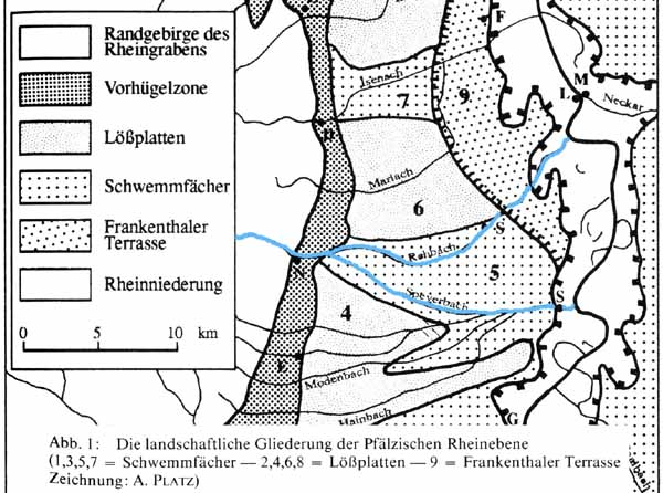 im Bereich der Schwemmkegel pfälzischer Bäche in der Rheinebene |